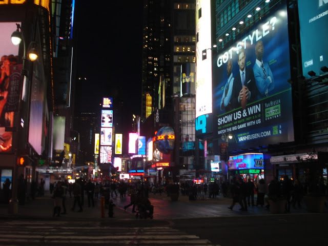 I took a short break changed my clothes to lots of layers and the new jacket!!! and then decided - crazy me - to walk to Time Square for the 'Night Tour'. It was an interesting walk but took me a good hour. New York streets are buzzing with people and life - there are little parks and patches where people sit and relax in the middle of the huzzle und buzzle... quite an amazing place! Time Square is another buzzing place = full of lights and people - amazing.